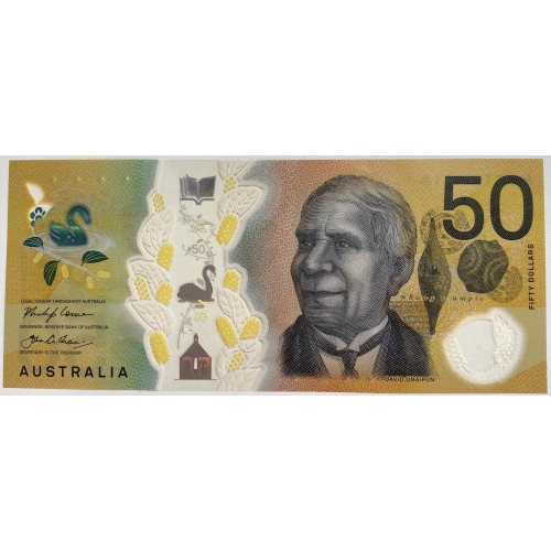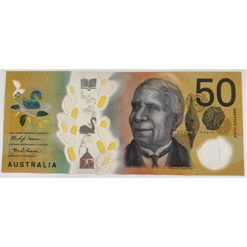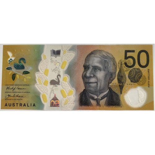 Australia 2018 Fifty 50 Dollars Banknote. Lowe/Fraser. First Prefix. Excellent High
