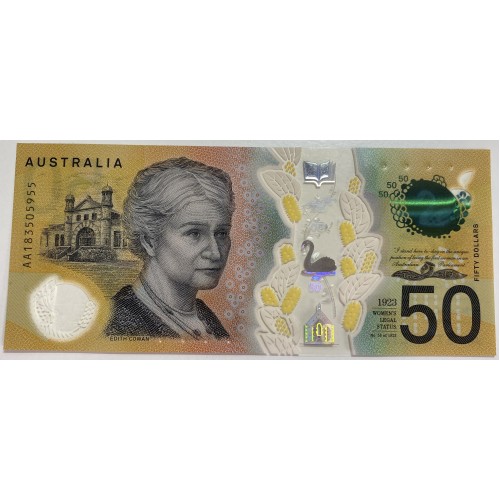 AUSTRALIA 2018 . FIFTY 50 DOLLARS BANKNOTE . LOWE/FRASER . FIRST PREFIX AA