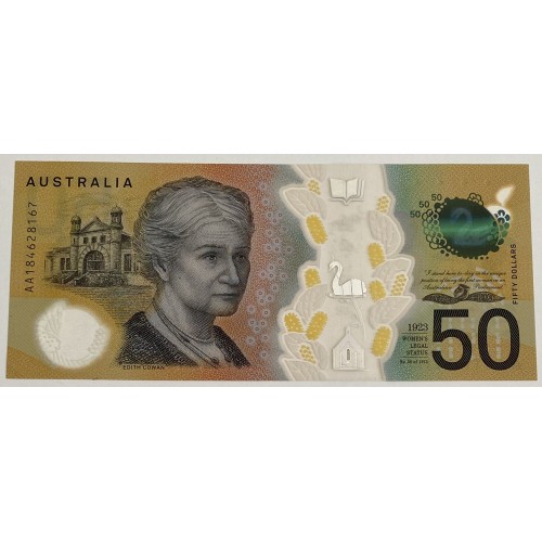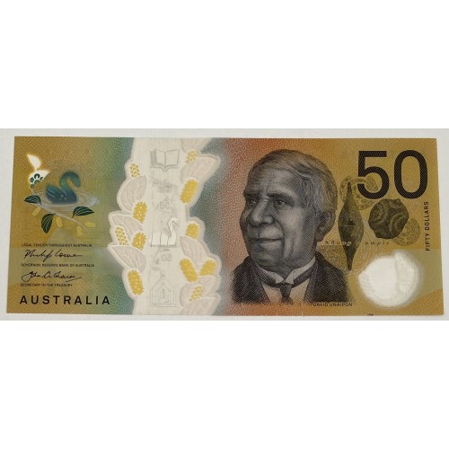Australia 2018 Fifty 50 Dollars Banknote. Serial: AA184628167. Lowe/Fraser.