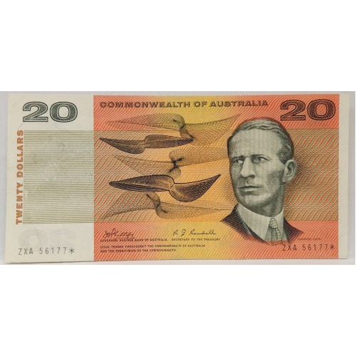 Australia 1968 Twenty 20 Dollars Banknote. Serial: ZXA56177*. Phillips/Randall.