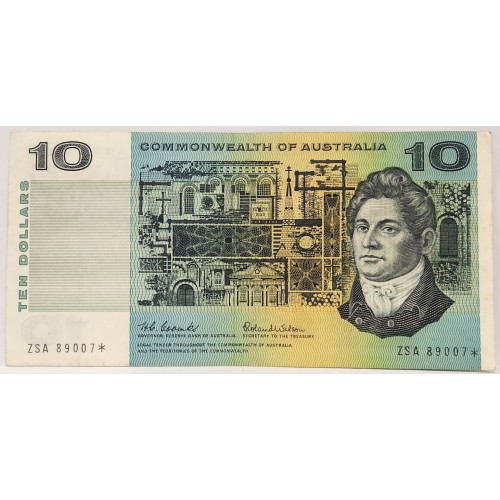 Australia 1966 Ten 10 Dollars Banknote. Serial: ZSA89007*. Coombs/Wilson.