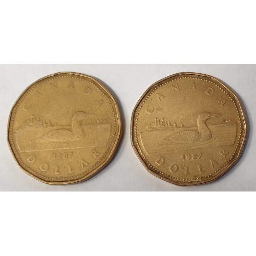 CANADA 1987 . ONE 1 DOLLAR . 2x LOONIE COINS . NICE GRADE . COLLECTABLE
