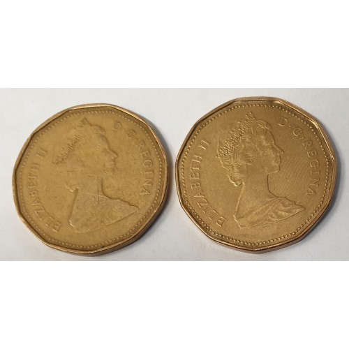 Canada 1987. 2x One 1 Dollar. Loonie Coins. Nice Grade. Collectable