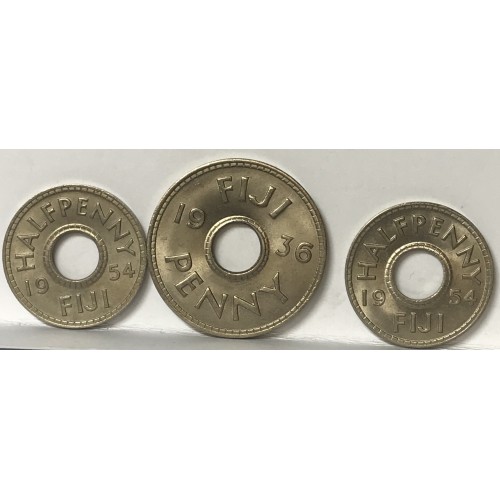 Fiji 1936 Penny and 2x 1954 1/2 Half Penny's. Rare. Choice Uncirculated