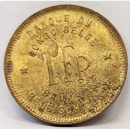 Belgium Congo 1944 One 1 Franc Coin. Key Date. Rare. Nice Grade. Hard to