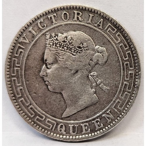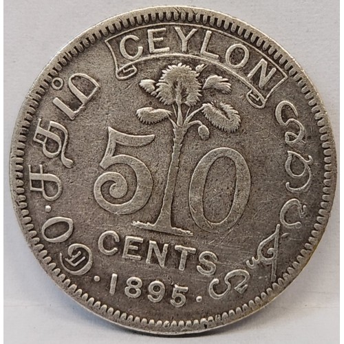 Ceylon 1895 Fifty 50 Cents Coin. Rare. Key Date. Hard to Find. Nice Grade