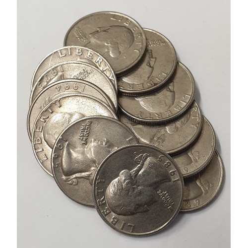 United States of America 1965 - 1993. 12x 1/4 Quarter Dollar Coins.