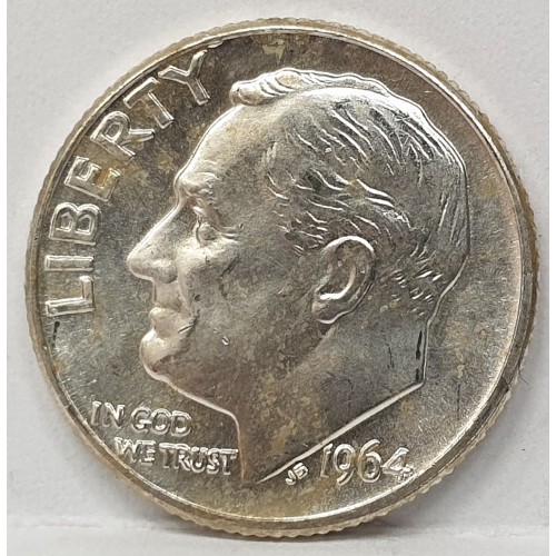 United States of America 1964D One 1 Dime Coin. Scarce. Brilliant Uncirculated