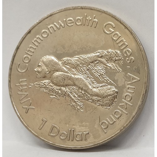 New Zealand 1990 One 1 Dollar Coin. Commonwealth Games. Swimming.