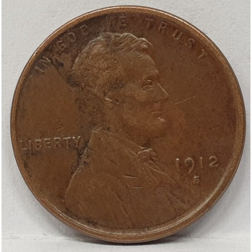 United States of America 1912S One 1 Cent Coin. Key Date. Very Scarce.