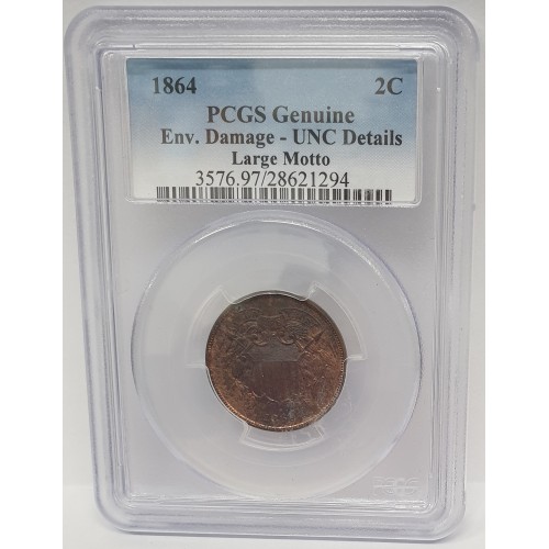 United States of America 1864 Two 2 Cents Coin. PCGS Slabbed. Copper.
