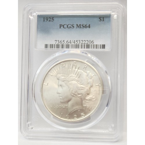 United States of America 1925. One 1 Dollar Coin. Slabbed. Peace Dollar.Gem.