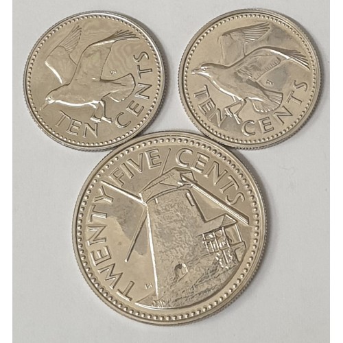 Barbados. 1980 Ten 10 Cents.1989 Ten 10Cents. 1980 Twenty-Five 25 Cents.