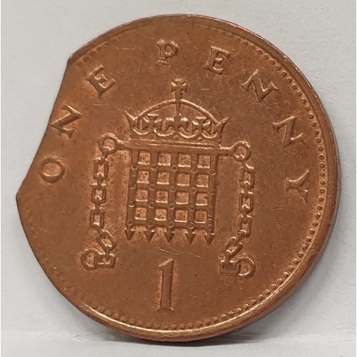 Great Britain UK 1997 One 1 Penny. Error. Clipped Flan. Bitten Edge.