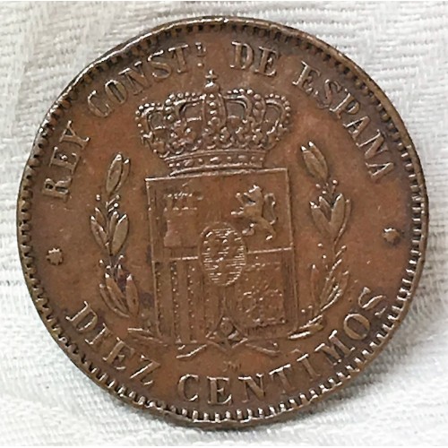 Spain 1878/7 Ten 10 Centimos Coin. Overdate. Excellent Grade. High Value. Rare.