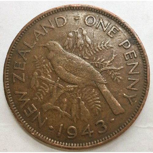 New Zealand 1943 One 1 Penny. Error. Extra Fine.Planchett Flaws around