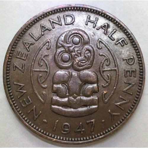 New Zealand 1947 1/2 Half Penny. Error. Choice. aUncirculated. Planchett
