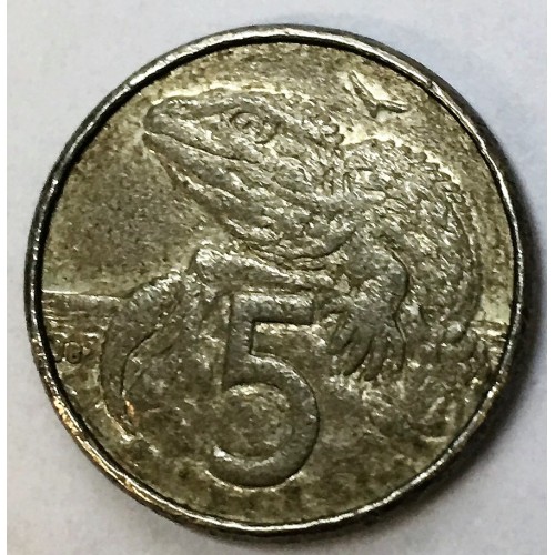 New Zealand 1985 Five 5 Cents Coin. Error. Rounded Edge. Extra Fine