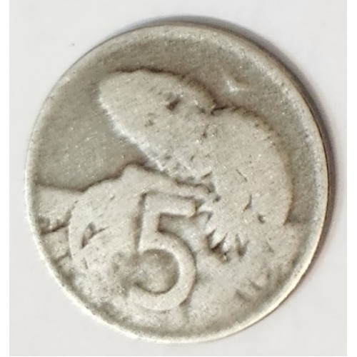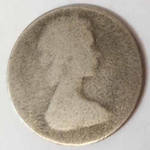 NEW ZEALAND 1967 . FIVE 5 CENTS . ERROR . OIL FILLED DIE