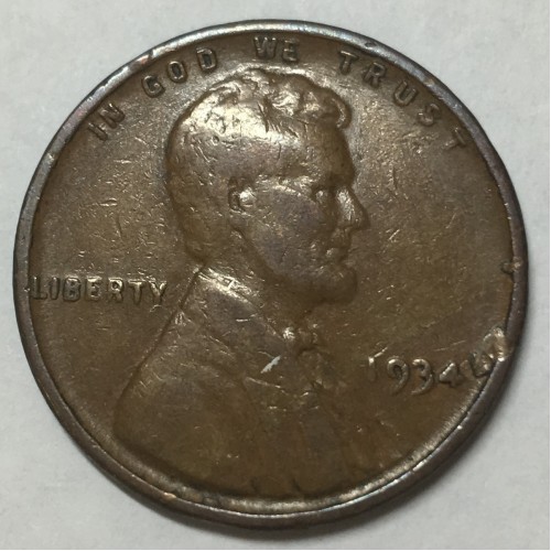 United States of America 1934 One 1 Cent Coin. Variety. Cud or Die Crack.