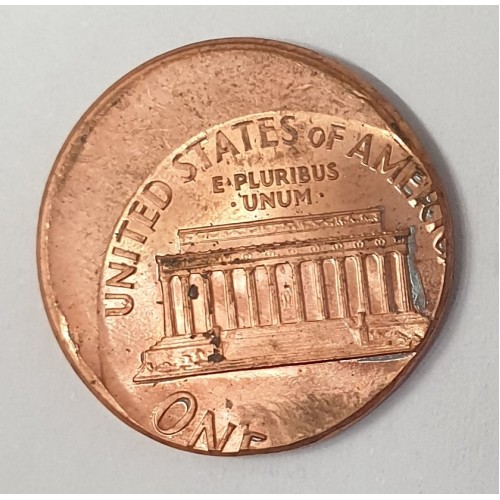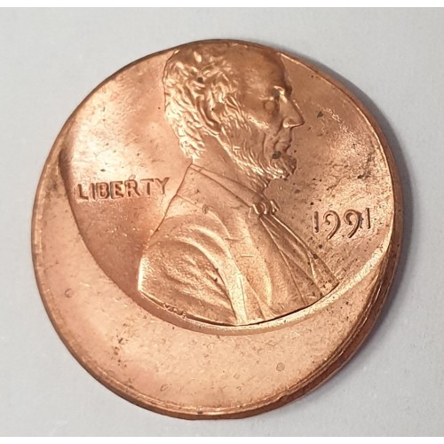 United States of America 1991. One 1 Cent Coin. Error. 25% Off Centre