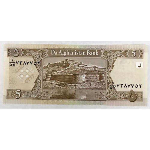 Afghanistan 2002 (SH1381). Five 5  Afghanis Banknote . Serial: 7387752.
