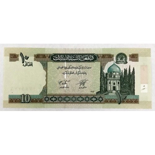 Afghanistan 2002 (AH1381). Ten 10 Afghanis Banknote. Serial: 2D 1785376.