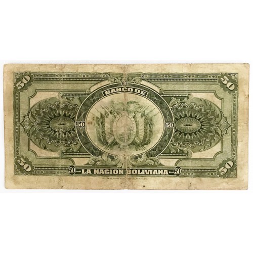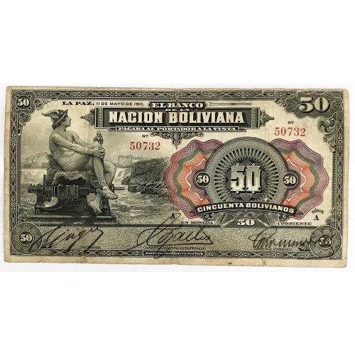 BOLIVIA 1911 . FIFTY 50 BOLIVIANOS BANKNOTE