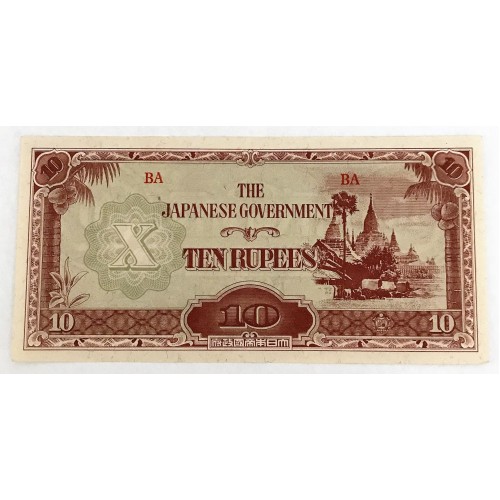 BURMA 1942 - 1944 . TEN 10 RUPEES BANKNOTE