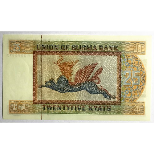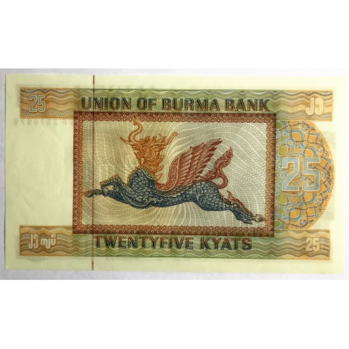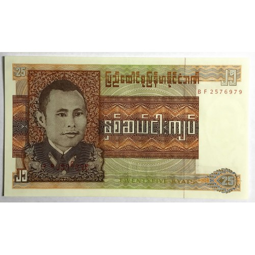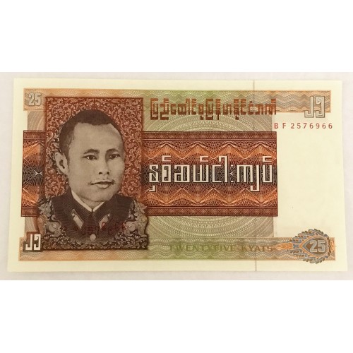 Burma 1972. Twenty-Five 25 Kyats Banknote. Choice Uncirculated.