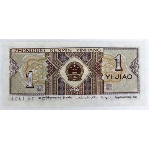 China 1980. One 1 Jiao Banknote. Serial: ZC44290713. Choice Uncirculated