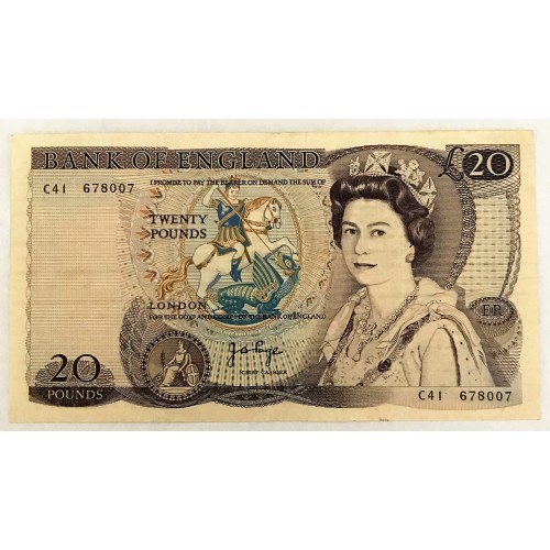 Great Britain UK 1970. Twenty 20 Pounds Banknote. Serial: C41 678007.