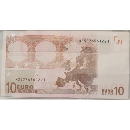 Austria 2002.Ten 10 Euro Banknote. Serial: N25276561221. Prefix N..Rare.