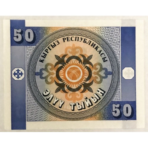 Kyrgyzstan 1993 Fifty 50 Tyiyn Banknote. Serial: 39/CH 00166143. Choice