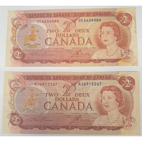 Canada 1974. 2 x Two2 Dollars Banknotes. Serial: RJ6912267/ UE6626484.