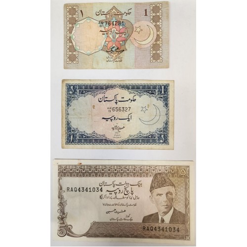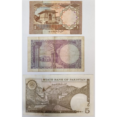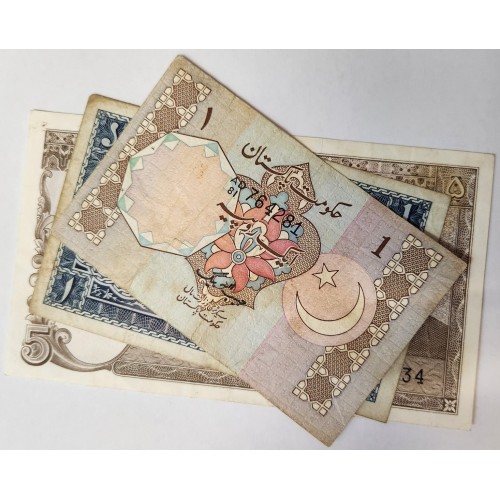 Pakistan 1975-1981 2 x One 1 and Five 5 Rupees Banknote.