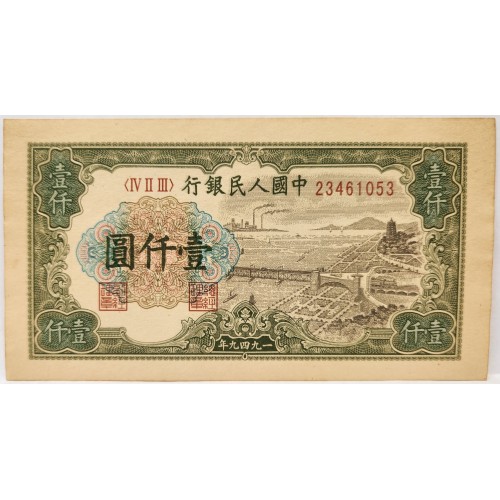 China 1949 One Thousand 1,000 Yuan Banknote. Serial: (IV II III) 23461053.