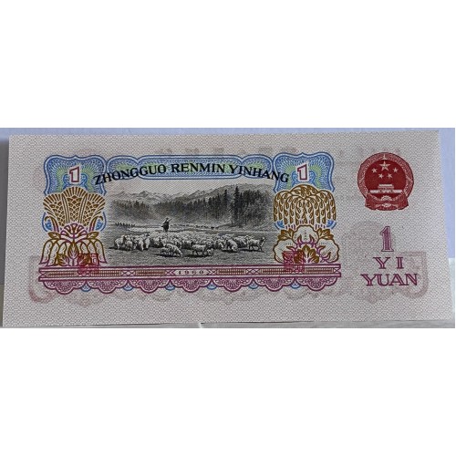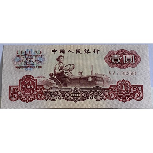 China 1960 One 1 Yuan Banknote. Serial: VV71052565. Stars Watermark.