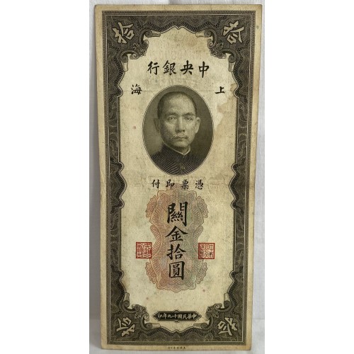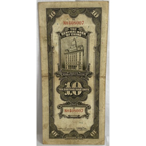 CHINA REPUBLIC 1930 . TEN 10 CUSTOM GOLD UNITS BANKNOTE