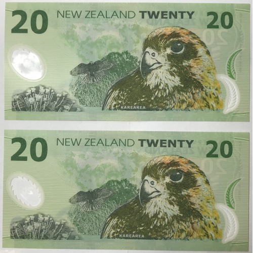 NEW ZEALAND 2002 . TWENTY 20 DOLLAR BANKNOTES . CONSECUTIVE PAIR