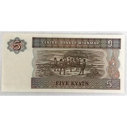 Myanmar 1997 Five 5 Kyats Banknote. Serial: CA3176320. Choice Uncirculated.