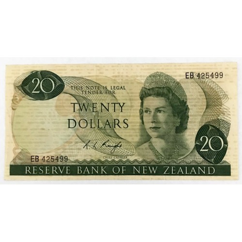 New Zealand 1967 Twenty 20 Dollars Banknote. Serial: EB425499.