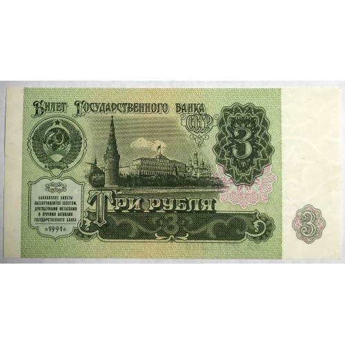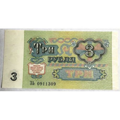 Russia 1961 Three 3 Rubles Banknote. Serial: 3b 0911309. Choice Uncirculated