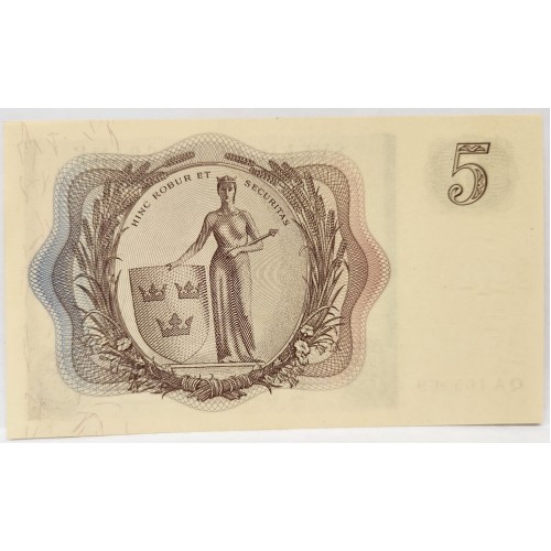 Sweden 1960 Five 5 Kroner Banknote. Serial: QA165369. Key Date. Very Scarce.