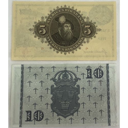 Sweden 1952-1958 Five 5 and Ten 10 Kroner Banknotes. Uncirculated.