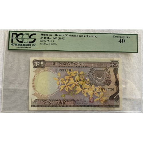 Singapore 1972 Twenty-Five 25 Dollars Banknote. Serial: A/10 893726. Rare.