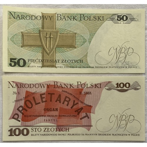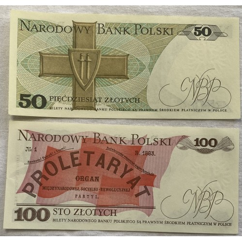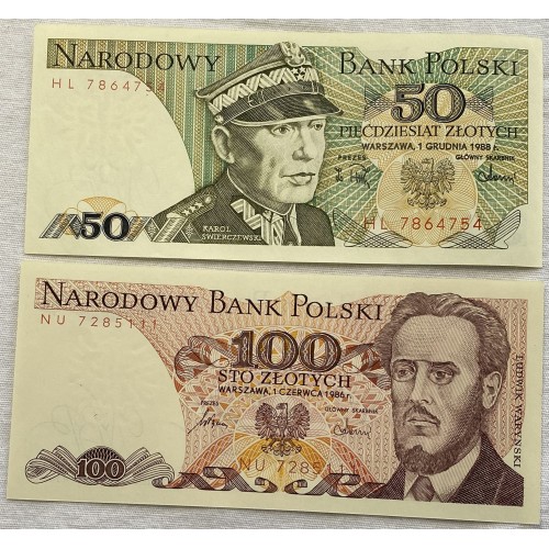 Poland 1983-1986 Fifty 50 and One Hundred 100 Zlotych Banknotes. Polski Bank.