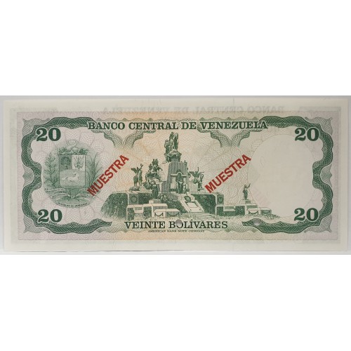 Venezuela 1981 Twenty 20 Bolivares Banknote. Serial: 00000000. Specimen.
