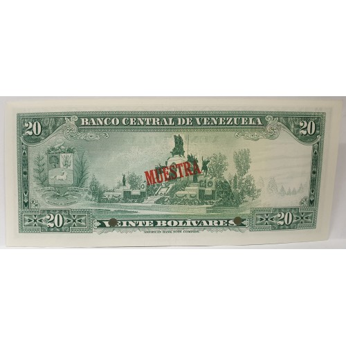 Venezuela 1972 Twenty 20 Bolivares Banknote. Serial: 00000. Specimen.