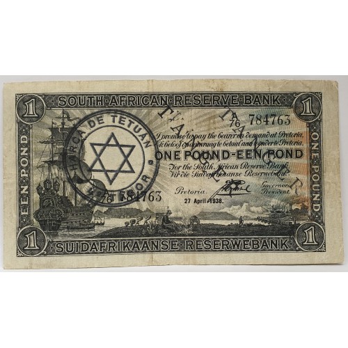 South Africa 1938 One 1 Pound Banknote. Serial: A76 784763. Specimen.